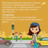 • Будьте внимательны к сигналам светофора: переходите дорогу только на зеленый сигнал светофора. Даже на зеленый сигнал убедитесь, что все автомобили остановились.