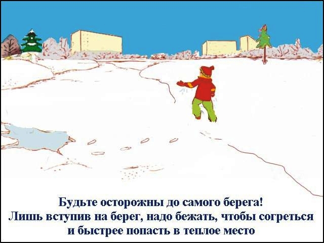 *Выбравшись на берег, не останавливаясь, чтобы не замёрзнуть, бегом добирайтесь до ближайшего тёплого помещения.