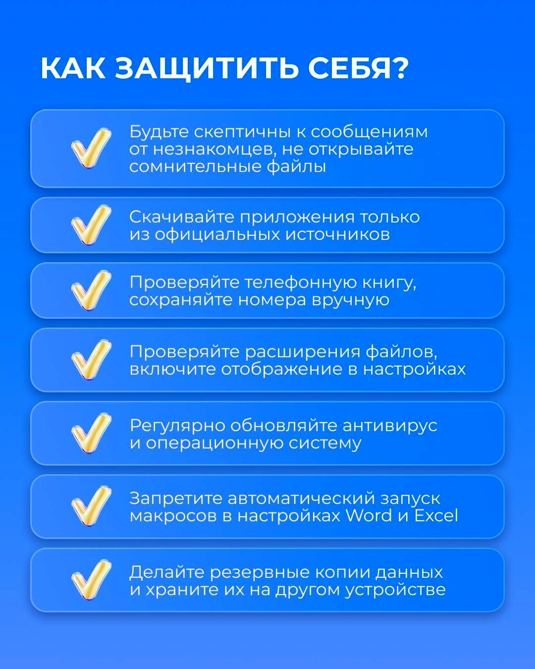 В эпоху цифровых технологий важно помнить: ваша безопасность в сети — это прежде всего ваша ответственность. Мошенники становятся все изощреннее, но есть простые и эффективные правила, которые помогут вам оставаться в безопасности.