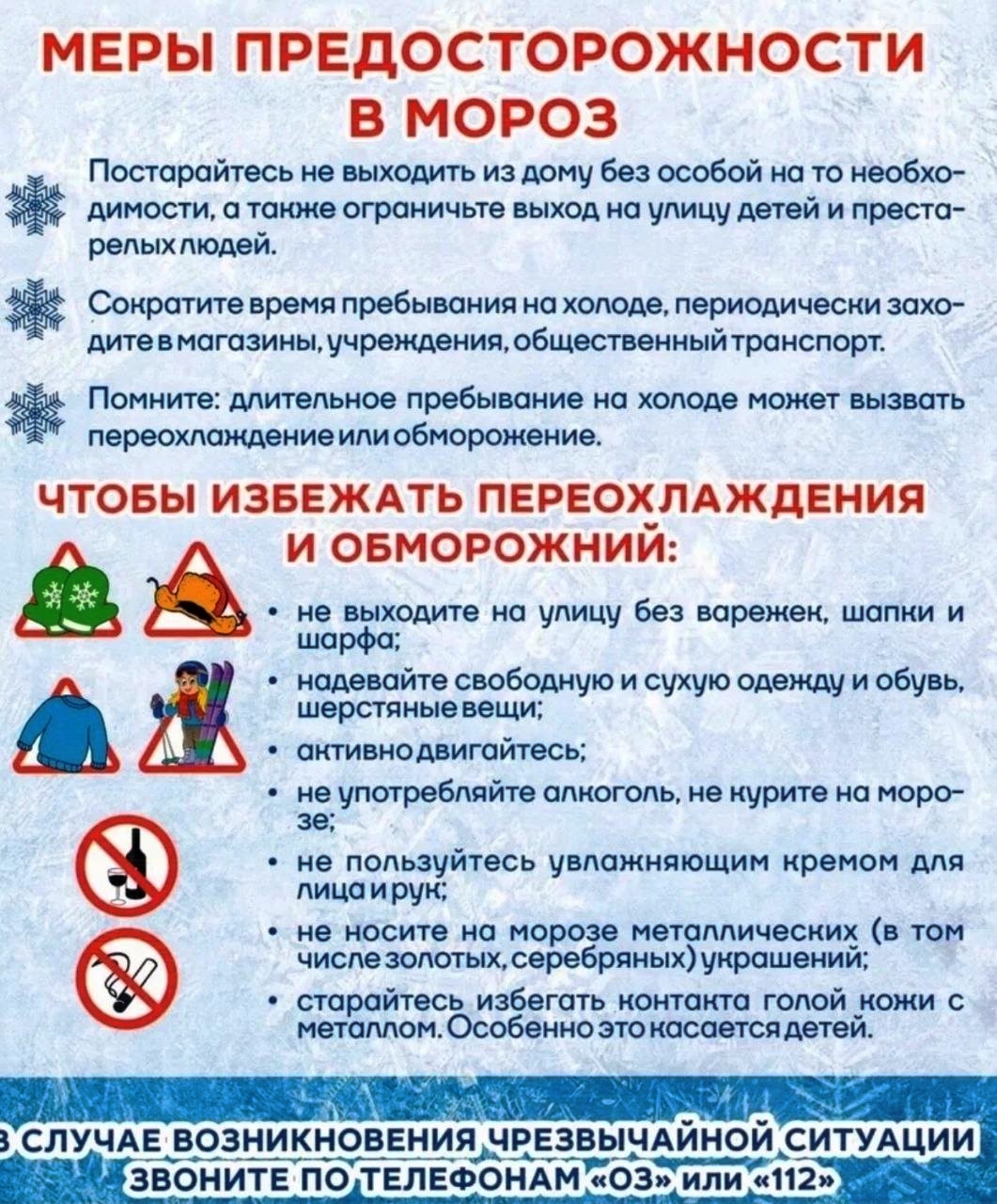 С наступлением сильных морозов напоминаем о правилах поведения, которые помогут сохранить здоровье и саму жизнь.