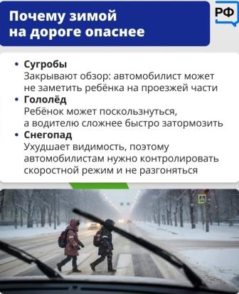 Зимой из-за погодных условий взрослым нужно быть ещё внимательнее. Рассказываем о правилах безопасности с Госавтоинспекцией в карточках