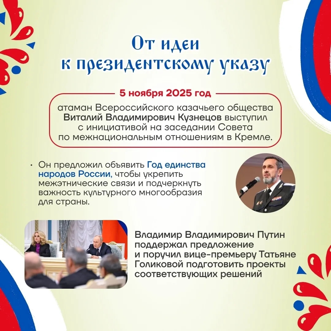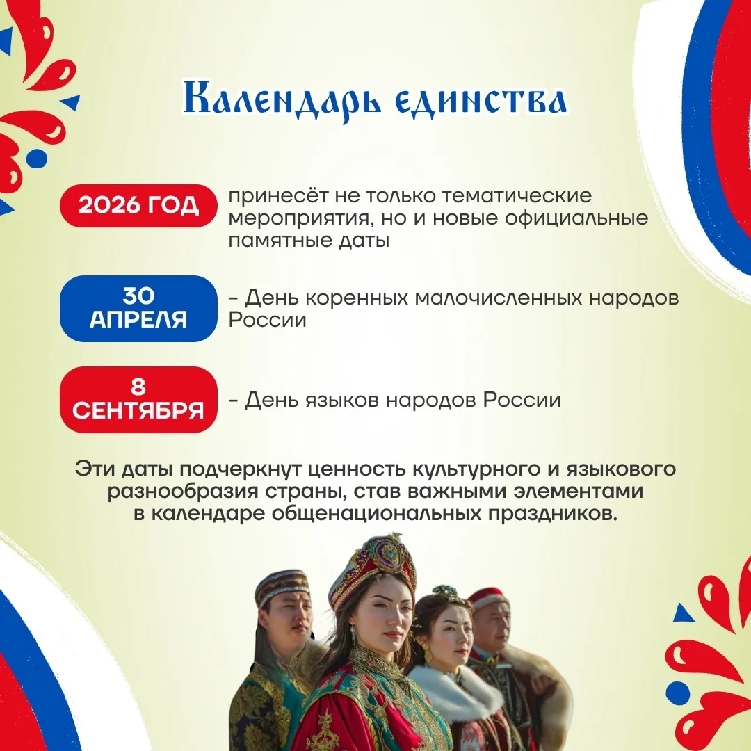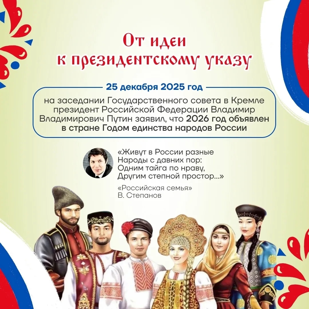 2026 год объявлен президентом России В.В. Путиным Годом единства народов России. Целый год это не разовое мероприятие, а начало долгосрочной работы по укреплению межнационального согласия.