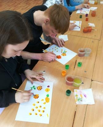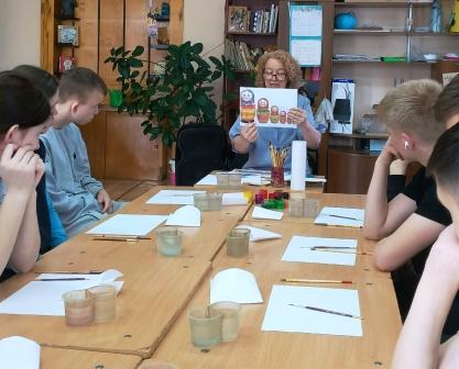 Под руководством Прониной Светланы Анатольевны старшеклассники научились разрисовывать матрешку в технике "примакивания".